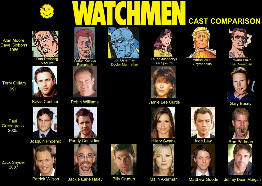 Tout d’abord un point d’histoire , en 1989 le succès colossal du Batman de Tim Burton aux USA fait l’effet d’une bombe, les studios réalisent qu’une adaptation de comics à qui on alloue un budget suffisant peut marcher. Comme souvent dans pareil cas l’obsession des studios est de dupliquer la formule. Entre en scène Joël Silver producteur phare de l’époque qui a redéfini le film d’action hollywoodien en enchaînant les classiques Lethal Weapon, Predator, Die Hard. Ce fan déclaré de comics affilié à Warner Bros. propriétaire par ailleurs de DC comics y voit l’occasion idéale de mêler ses deux passions et jette son dévolu sur Watchmen. Cette série en douze parties qui vient l’année précédente d’être récompensé par le prestigieux prix Hugo, le Goncourt de la SF américaine qui couronne pour la première fois une bande dessinée est pourtant réputée inadaptable. Silver embauche tout naturellement le scénariste du Batman de Burton Sam Hamm devenu de facto le « go to guy » pour les adaptations de comics pour s’attaquer à l’œuvre d’Alan Moore et Dave Gibbons.Pour la réalisation Silver approche Terry Gilliam qui , même si le film fut un échec financier est auréolé du prestige de son Brazil .Gilliam le « maverick » lui-même dessinateur est fan du comics tout s’annonce donc sous les meilleures auspices…
