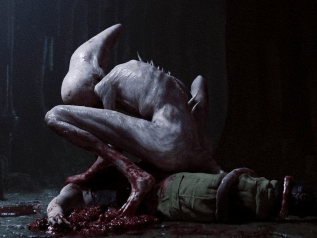 Ce retour de Ridley Scott à l’orthodoxie Alien se ressent naturellement dans sa direction artistique avec la réapparition de l’esthétique utilitaire « camionneur de l’espace » par opposition à l’extrême sophistication du design de Prometheus, c’est Chris Seager (X-Men: Le commencement mais aussi les cinq derniers films du regretté Tony Scott) qui succède au fidèle Arthur Max, son travail sur le vaisseau Covenant et les ruines de la nécropole des Ingénieurs est réussi. Scott et son directeur de la photo Darius Wolski (Pirates des Caraibes) – il travaille avec lui depuis Prometheus – composent des images plus sombres mais toujours sublimes qui privilégient des couleurs froides ou désaturées (sauf pour les scènes de la nécropole). Comme à son habitude Scott prend un main plaisir à faire jaillir des éclats d’horreur dans un écrin somptueux, si il manque à Alien Covenant LA scène comme l' »avortement » de Shaw dans Prometheus ou le dernier repas de Kane dans l’original, il orchestre des séquences horrifiques particulièrement frontales et cruelles telles l’éclosion des « Backbusters » ou une attaque nocturne des Neomorphes créatures albinos ultra agressives. Ironiquement par contraste avec ces derniers la présence du xénomorphe semble confirmer le jugement que Scott portait sur lui à l’époque de Prometheus, il est devenu une figure trop familière pour inspirer la terreur même iconisé comme Scott le fait ici. Intelligemment il réserve la bête pour des scènes axées sur l’action plus que sur l’horreur. Et si Scott n’a pas, contrairement à James Cameron, cette fibre de l’action comic-booky, elles comptent parmi les scènes de pure ‘action les plus réussies de sa filmographie.