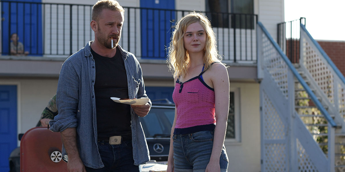 Après le triomphe de la première saison de True Detective son auteur Nic Pizzolato est devenu la coqueluche d’Hollywood et les droits de son roman Galveston (écrit avant la série) furent rapidement achetés en vue d’une adaptation cinématographique. Adaptation qui s’enlisa après la diffusion de la saison 2 de la série beaucoup moins bien accueillie (nous l’aimons beaucoup ici aux chroniques). Le projet se concrétise finalement écrans repris de manière plus inattendue par l’actrice-réalisatrice française Mélanie Laurent (dont c’est le cinquième film) qui en signe la mise en scene mais aussi l’adaptation. Le choix de la parisienne peut paraître un choix étrange pour un film noir se déroulant dans la moiteur du sud écrit par un romancier originaire de Louisiane mais Laurent suit la feuille de route du roman de Pizzolatto avec des décors et une ambiance poisseuses qui évoqueront les comparaisons avec ceux de la première saison de True Detective d’autant que la réalisatrice tente également un grand plan séquence à un moment crucial de son film. Malgré tout de nombreuses scènes de ce road-movie qui réunit un criminel malade traqué par son ancien patron et une jeune prostituée évoquent un cinéma plus européen. Le film s’ouvre sur un plan énigmatique d’un appartement battu par les vents d’une tempête avant de couper brusquement nous amenant dans le cabinet d’un médecin qui apprend à Roy Cady (Ben Foster) qu’il est sans doute atteint d’un cancer des poumons.. Sa journée ne fait qu’empirer quand il se rend compte que sa petite amie le trompe avec ouvertement avec son patron Stan (Beau Bridges). Ce dernier lui demande d’aller intimider , sans armes, un de ses débiteur , mais il s’agit d’un traquenard dont il s’échappe de peu. Après avoir abattu, Roy remarque une jeune femme Raquel Arceneaux (Elle Fanning) attachée à une chaise couverte de sang , détenue dans la maison, il la libère et l’emmène avec lui. Raquel lui demande de s’arrêter quelque part avant de quitter la ville et en ramène une enfant de trois ans qu’elle présente comme sa sœur. Le trio se retrouve bientôt dans un motel à Galveston alors que Roy doit essayer de trouver un moyen de les garder en vie.