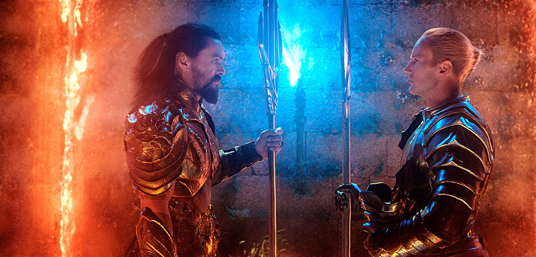 Il y a une certaine ironie à voir un personnage longtemps l’objet de moqueries parmi les fans et les amateurs occasionnels se retrouver être le plus grand espoir de la major Warner Bros. pour relancer ses adaptations de DC Comics. Man of Steel et Batman v Superman avaient divisés les fans et les critiques malgré des scores au box-office honorables (quoi qu’en dessous des objectifs) , Wonder Woman avec un ton plus optimiste avait été bien accueilli avant que Justice League à la genèse torturée (son réalisateur initial Zack Snyder abandonnant le projet avant la fin du tournage pour raisons familiales remplacé par Joss « Avengers » Whedon qui tente en vain d’en modifier le ton) ne sombre à la fois qualitativement et commercialement. Suite à cet échec WB demande à Walter Hamada producteur de la saga Conjuring, l’univers partagé le plus rentable de la firme, de reprendre en main le DCEU. Ce dernier recrute son réalisateur star James Wan qui a également prouvé son expertise sur des méga-productions puisqu’il a réalisé Fast & Furious 7, qui plus est dans ds circonstances difficiles puisqu’il eut à gérer le décès au cours du tournage de Paul Walker. A lui de résoudre l’équation impossible faire de Aquaman un blockbuster à la fois épique, fidèle au comics et léger qui pourrait bénéficier d’un accueil comparable aux films de Marvel Studios. Mais le sort est ironique en prenant la direction opposée aux films de Zack Snyder, Wan abouti à un film tout aussi éloigné des Marvel que l’était BvS. Avec Aquaman , le prodige australien tente d’un même mouvement d’embrasser l’iconographie colorée et parfois naïve des comics de super-héros à rebours de l’univers sombre et dé-saturé établi dans les opus wagneriens de Snyder , d’évoquer les grands films d’aventures des années 80 (d’Indiana Jones à la Poursuite du Diamant vert) avec son duo de héros blasé et d’héroïne déterminée tout en construisant un univers sous-marin de fantasy comparable par son ampleur à la Terre du Milieu tout cela en un seul film de deux heures vingt quatre. Le résultat ressemble à la collision de tous ces éléments si ils avaient été introduits dans l’accélérateur de particules du CERN.