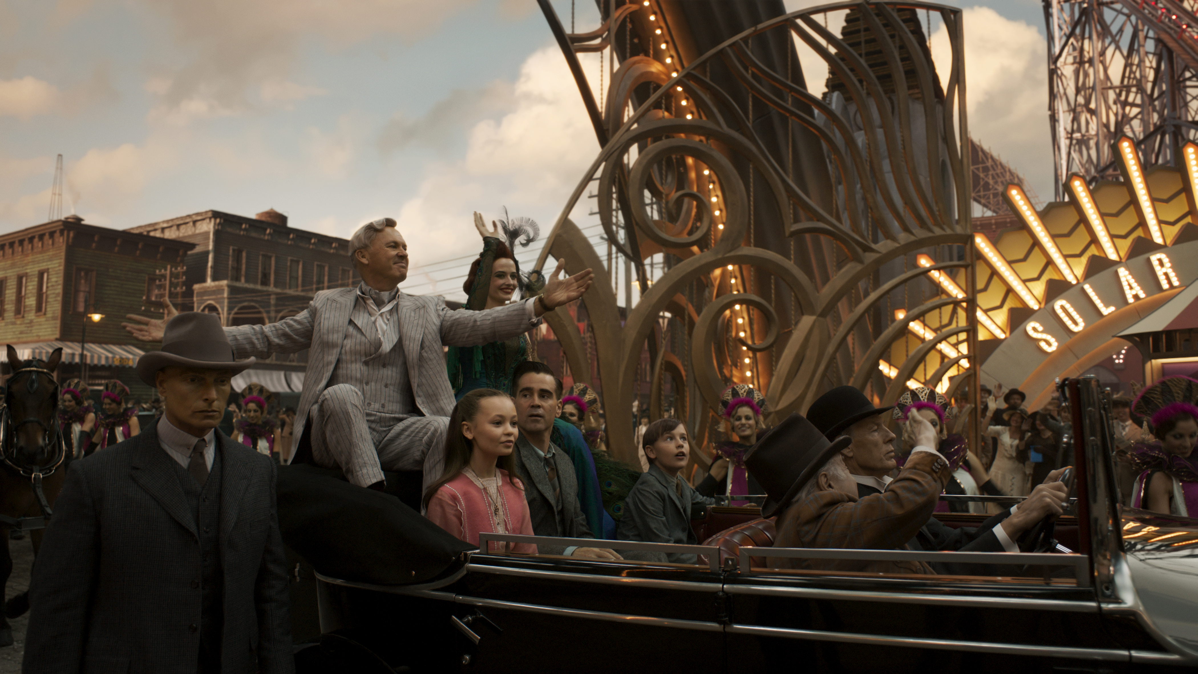 Le Dumbo original (un des dessins animés les plus brefs de la firme à cause des économies réalisées durant sa production ) avait été mis en pour compenser les faibles recettes de Pinocchio et Fantasia. Malgré sa brièveté le film était devenu l’un des films préférés du public grâce à son histoire simple mais émouvante. Le scénario signé Ehren Kruger (Transformers 2,3,4 mais aussi l’excellent Arlington Road ) prend des libertés dans son adaptation du film d’animation de 1941, réinterprète les figures et les moments marquants du film de Ben Sharpsteen comme le défilé d’éléphants roses mais élargit l’histoire pour y inclure les perspectives de plusieurs personnages humains là où le film d’animation se plaçait strictement du point de vue de Dumbo et ses compagnons animaux . On retrouve ainsi dans le rôle du père des enfants qui se prennent d’affection pour Dumbo, Colin Farrell (un rôle abandonné par Will Smith) et trois habitués du cinéma de Burton : sa nouvelle muse Eva Green en trapéziste, plus chaleureuse qu’à son habitude, , Danny DeVito en propriétaire du cirque, un rôle similaire à celui qu’il tenait déjà dans Big Fish et Michael Keaton qui retrouve le réalisateur vingt-sept ans après Batman le défi (dans lequel il partageait déjà l’affiche avec DeVito). A l’image de l’original Dumbo 2019 reste un récit assez simple mais l’histoire se répète car c’est cette même simplicité qui contribue à la réussite de la version de l’auteur de Mars Attacks. En dépit de la sophistication de sa direction artistique (la firme à la souris n’a certainement pas rogné cette fois sur le budget) garde une belle atmosphère de film familial un peu surannée qui fonctionne car elle n’est jamais cynique. Si il ne faut pas s’attendre à une grande profondeur dans le développement des personnages tous les comédiens les habitent avec assez d’authenticité pour les rendre attachants, parfaitement conscients du ton du film. Colin Farrell habitué à des rôles plus sombres surprend par l’équilibre entre sérieux, comique et émotion qu’il apporte à son personnage et se montre particulièrement à l’aise dans l’univers de Burton. Le script de Kruger avec ses freaks et ses bras cassés enthousiastes est taillé sur mesure pour Burton, Dumbo est aussi une figure Burtonienne outsider muet rejeté par sa communauté dont la différence devient un pouvoir. Il introduit un message émouvant et actuel sur les droits des animaux ou l’éducation des filles. Burton et Kruger livrent également un commentaire ironique (et méta) sur l’industrie du divertissement en faisant du méchant de l’histoire V. A. Vandevere un businessman cynique et cruel mélange entre PT Barnum et Walt Disney (incarné par Michael Keaton dans un rôle destiné initialement à Tom Hanks qui avait déjà interprété Walt Disney dans A l’ombre de Mary) et de ses héros des outsiders qui ébranlent une corporation du divertissement. Mais il en faut plus pour effaroucher la machine Disney !