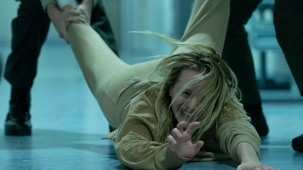 Le titre du film est volontairement trompeur, car alors que les versions précédentes se concentraient sur le protagoniste et des effets sur sa psyché des expériences le rendant invisible , l’itération 2020 est bâti autour de sa compagne et des effets très réels d’une relation abusive, sujet intégré dans un film d’horreur de science-fiction au travers de la figure de l’homme invisible. Le film s’ouvre sur Cecilia (Elizabeth Moss) qui quitte au beau milieu de la nuit la propriété high-tech à flanc de falaise de son compagnon Adrian (Oliver Jackson-Cohen) encore endormi, on comprend vite à son regard inquiet que cette sortie nocturne est en fait une évasion, d’autant que son conjoint attaque sauvagement la voiture de sa sœur Emily (Harriet Dyer) venu la recueillir. Pourtant deux semaines après sa fuite, alors qu’elle s’est réfugié auprès d’un ami policier (Aldis Hodge) et de sa fille (Storm Reid), Tom (Michael Dorman) le frère d’Adrian lui apprend que ce dernier a mis fin à ses jours et lui lègue une partie de sa fortune. Suspicieuse de ce suicide, d’étranges phénomènes finissent par la convaincre que son ex, scientifique de génie spécialiste de l’optique a trouvé le moyen de se rendre invisible pour la tourmenter. Mais comment convaincre son entourage d’une telle hypothèse sans passer pour folle ? En mêlant le mythe de l’Homme Invisible au sous-genre de l’“ex des enfers” popularisé à la fin des années 80 – début 90 par des films comme Liaison Fatale ou Les Nuits avec mon ennemi avec Julia Roberts Leigh Wannell donne à sa relecture de l’œuvre de H.G Wells une résonance toute particulière à notre époque de prise de conscience des violences faites aux femmes dans le sillage du mouvement MeToo, qui dépasse l’exercice de genre. Les tropes bien connus du fantastique comme l’incrédulité qui accueille le récit que fait l’héroïne confrontée à des phénomènes inexplicables, se font ici métaphore de celle qui accueille trop souvent le témoignage des victimes d’agressions sexuelles ou de violences conjugales. La remise en cause de son état psychologique y compris par son entourage rappelle des comportements connus surtout quand les accusés sont des hommes de pouvoir. Souvent même l’agresseur fini par être vu comme la victime et c’est ne partie ce qui arrive ici grâce à une péripétie que nous ne dévoilerons pas. Le choix d’Elizabeth Moss, qui incarne déjà dans l’esprit du public cette résilience féminine grâce à son rôle dans la série The Handmaid’s Tale renforce cette métaphore.