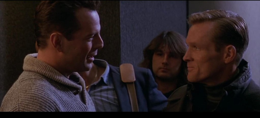 Die Hard 2 partage un bon nombre des vertus des meilleurs films de James Bond, McClane devenant une sorte de 007 col bleu, plus fatigué et plus tête brûlée, toujours une boutade aux lèvres mais pas moins invincible. Le personnage de McLane , son exultation de l’individualisme américain et du solitaire incarne une forme d’héroïsme typiquement américain , mélancolique et même parfois masochiste qui trouve ses racines dans le western classique. A l’image de Sean connery dans les Bond, Bruce Willis se confond avec son personnage dont il a façonné l’humour par ses improvisations dans le premier volet encouragées ici par le réalisateurs finlandais qui lui permet de mêler une attitude de dur à cuire tout en conservant son sens de l’humour.