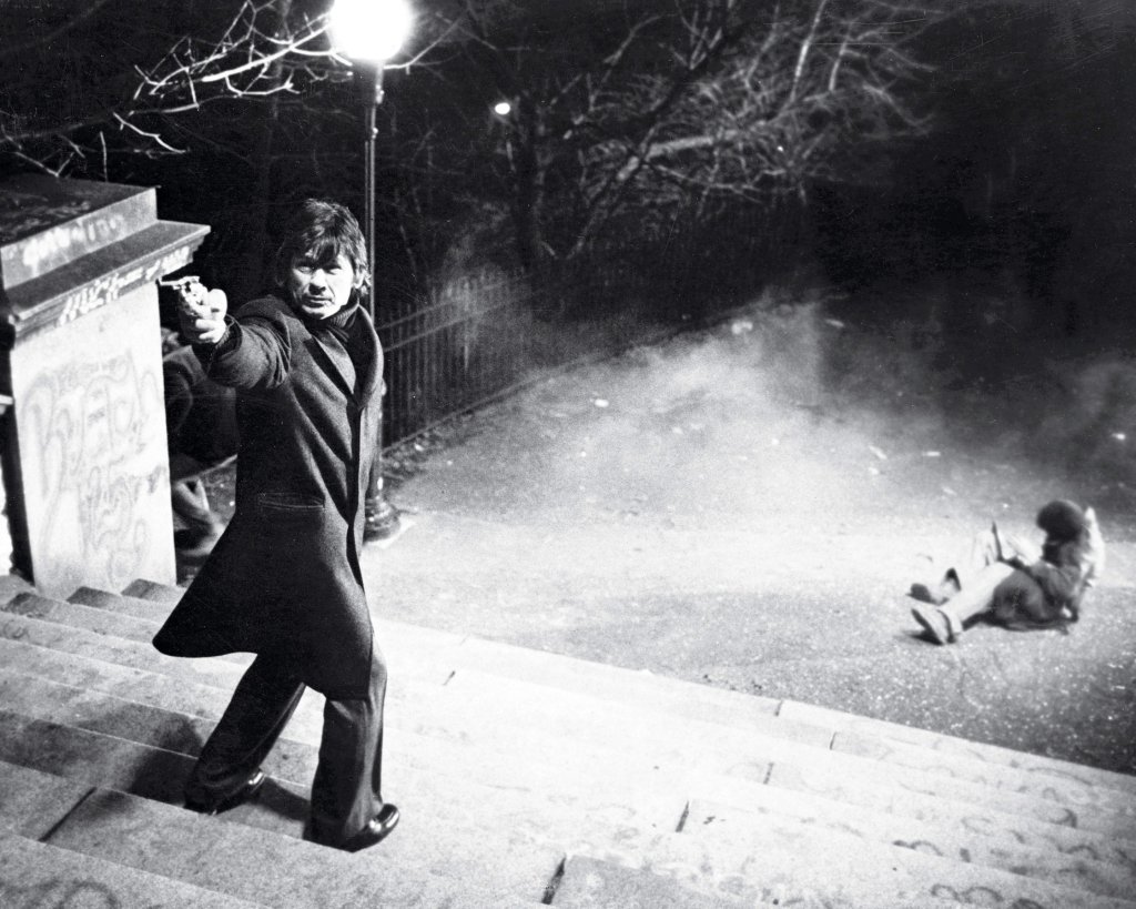 Certes le film a une dimension idéologique mais il présente l’évidence de ses solutions radicales sous la forme d’une série B ultra-efficace. Un justicier dans la ville fonctionne selon le modèle qui sera repris dans nombre d’ »origin stories » de super-héros : l’incident qui va déclencher la transformation du héros en justicier, ses premiers pas maladroits et ses expérimentations – ici d’excellentes scènes où Bronson / Kersey utilise d’abord comme arme des bas remplis de pièces de monnaie – avant de se fixer sur le pistolet qu’il avait reçu en cadeau dans sa « vie d’avant ». On se projette évidemment dans le personnage, ainsi quand ses activités mettent la police sur sa piste on est de son coté espérant que le lieutenant Ochoa du NYPD (Vincent Gardenia) ne parviendra pas à le neutraliser. Tourné sur les lieux de l’action dans un New York plus sombre, plus sale et effrayant qu’il ne l’est aujourd’hui, Michael Winner crée avec la photographie granuleuse de son chef opérateur Arthur J. Ornitz une ville d’une beauté inquiétante et menaçante. Le score percutant et anxiogène d’Herbie Hancock achevant de lui donner une vraie texture.