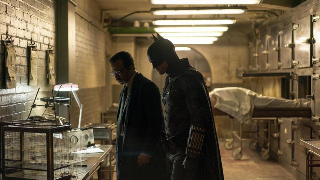 Le montage, assuré par William Hoy (La Planète des Singes : Suprématie, Watchmen), joue un rôle essentiel dans la texture narrative du film. Avec une durée flirtant avec les trois heures, The Batman défie le rythme effréné habituel des films de super-héros. Hoy et Reeves optent pour un tempo contemplatif, presque procedural, qui donne le temps aux énigmes de s’installer et aux personnages de respirer dans leur misère. Cette lenteur délibérée est une force, car elle permet à l’atmosphère de Gotham de s’épaissir et à la tension de monter par accumulation. Néanmoins, cette ambition narrative et cette générosité en scènes d’enquête font que, par moments, le film s’étire en longueur, son rythme contemplatif altérant légèrement la tension. De même, la complexité tentaculaire de l’intrigue du Riddler, qui nécessite l’exploration de multiples couches de corruption, peut parfois nuire à la clarté immédiate du récit. Le montage alterne entre de longues séquences d’enquête silencieuses, où Batman agit comme un véritable détective médico-légal (une première dans la saga), et des explosions de violence ou d’action, qui servent de ponctuations dramatiques. L’Effet d’immersion est notamment favorisé par le montage qui utilise des coupes fluides et s’attarde sur les visages ou les détails macabres ; par exemple, la séquence d’introduction, étirée et sans dialogue, utilise un rythme lent pour souligner la patience et la méthodologie du Riddler et la présence omnisciente de Batman. Le contraste est créé par les scènes d’action, comme la poursuite de la Batmobile ou le combat final dans l’arène inondée, qui sont montées avec une brutalité et une rapidité qui contrastent fortement avec les scènes de dialogue et d’enquête, renforçant ainsi l’impact émotionnel et physique de ces pics narratifs. Enfin, si le film souffre d’une légère redondance par endroits, sa longueur est nécessaire pour dérouler l’intrigue tentaculaire du Riddler et révéler les secrets des familles fondatrices de Gotham.