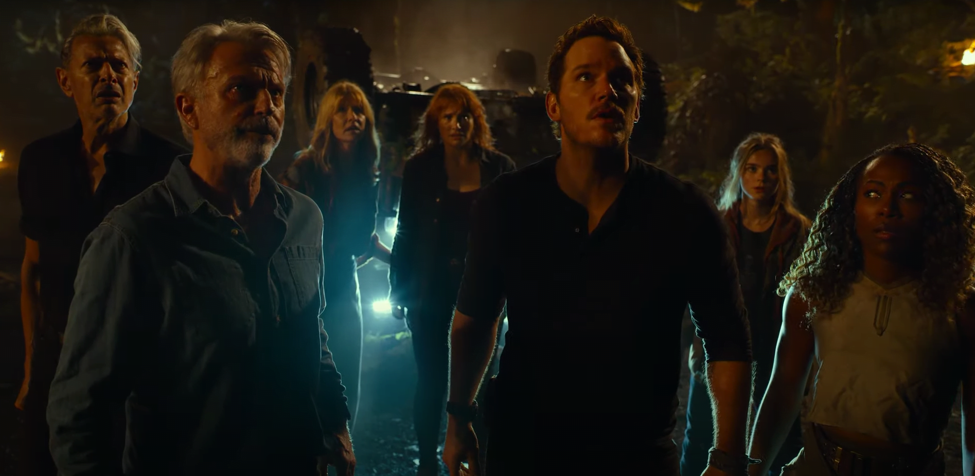Il est assez surprenant de constater que l’enthousiasme et l’implication des comédiens du film original semblent plus grands que celles des héros de la trilogie en cours. Laura Dern, Sam Neill et Jeff Goldblum semblent heureux de se retrouver et font tout pour tenter d’animer le récit et donner aux spectateurs des moments équivalents à ceux de Han Solo dans Star Wars The Force Awakens. Mais ils se heurtent à un problème inhérent à cette franchise : les personnages de Jurassic Park n’ont jamais été aussi emblématiques que le film. Plus que des personnages incarnés ils servaient avant tout de rouages dans la mécanique de précision mise en place par Spielberg et son scénariste David Koepp , assez caractérisés pour que le spectateur tremble pour eux mais jamais assez développés pour entretenir une vraie connexion. Ce sont bien les dinosaures en particulier le T-Rex qui tenait lieu de star emblématique de la franchise. Jurassic World Le Monde D’Après essaie de faire ressentir cette nostalgie au forceps mais ces efforts apparaissent vains. Mais que dire alors des personnages principaux de cette trilogie ! Bryce Dallas Howard et Chris Pratt semble moins impliqués. Pratt en particulier traverse le film en pilote automatique, livrant sans doute la pire performance de sa carrière à l’image de la Jennifer Lawrence dans les derniers films X-Men. Le personnage est ici privé de tout charisme et de tout humour, il n’est qu’un ex-militaire taciturne attendant que sa doublure numérique prenne sa suite dans les séquences d’action. Bryce Dallas Howard tente d’injecter un peu d’humanité à son personnage mais son implication peine à dépasser le minimum syndical.