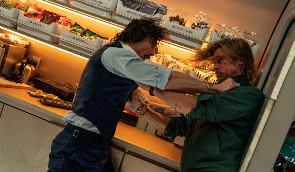 Sauf pour une poignée de grincheux il est indéniable qu’avec John Wick, les réalisateurs David Leitch et Chad Stahelski, issus du monde des cascades, ont révolutionné la mise en scène de l’action dans le cinéma américain. Leur philosophie, qui privilégie de longues prises en plan large sans coupes intempestives, « shaky cam » ou ralentis abusifs, met en valeur les prouesses physiques des performeurs. Depuis, bien que les deux réalisateurs mènent des carrières solo sous la bannière de leur compagnie de production 87North Productions, ils restent associés. Stahelski poursuit la saga John Wick (un quatrième volet est prévu pour 2023), tandis que Leitch, avec le directeur de la photo français Jonathan Sela, enchaîne des projets de plus en plus ambitieux avec des grandes vedettes : Atomic Blonde avec Charlize Theron, Deadpool 2 pour Ryan Reynolds, et le premier spin-off de la saga Fast & Furious, Hobbs & Shaw. Bien que ses films conservent en partie sa philosophie de l’action, l’augmentation des budgets a rendu son style plus commercial et impersonnel, avec des effets visuels numériques envahissants qui diminuent l’impact de l’action et des scripts parfois décevants. Heureusement, Leitch reprend l’initiative avec Bullet Train, un « high-concept » explosif adapté d’un roman japonais de Kōtarō Isaka. Ce divertissement estival rapide, mortel et très drôle met en scène des tueurs d’élite enfermés dans un Shinkansen reliant Tokyo à Kyoto, découvrant peu à peu que leurs objectifs sont tous liés. Leitch bénéficie du soutien de Brad Pitt, une star dont il avait assuré la doublure sur de nombreux films, comme Fight Club, Troie ou Mr. & Mrs. Smith.