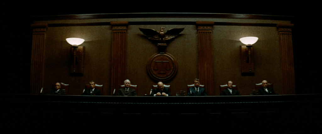 C’est sur cette trame fragmentaire, où les événements s’enchaînent sans liens apparents, que Pakula, son directeur de la photographie Gordon Willis et le compositeur Michael Small instillent un sentiment d’anxiété permanente. Le motif récurrent du film est la miniaturisation des personnages : filmés de très loin, comme des fourmis écrasées par l’immensité de leur environnement, ils apparaissent isolés et vulnérables, perdus au cœur de structures brutalistes imposantes. Beatty, piégé dans un barrage où l’eau s’écrase dans la vallée artificielle, ou errant au milieu d’espaces monumentaux, semble n’être qu’un pion sur un échiquier géant. Cette mise en scène donne l’impression constante qu’ils sont surveillés. La contribution de Willis (Klute, Le Parrain, Les Hommes du Président, Annie Hall, Manhattan—sans jamais avoir été nommé aux Oscars !) est inestimable. Sa maîtrise du clair-obscur, où les personnages émergent et disparaissent dans des ténèbres menaçantes, est proprement stupéfiante. Il repousse les limites de la pellicule avec des noirs d’une profondeur extrême, enveloppant de nombreuses scènes dans une obscurité oppressante. Pakula et Willis développent un style visuel favorisant non pas la tension ou l’action, mais l’aliénation et un sentiment d’impuissance. L’ouverture et la conclusion du film—cette commission d’enquête filmée à distance, leurs visages noyés dans l’ombre—illustrent cette idée de l’incapacité individuelle à influer sur le cours des événements. Les images linéaires et mécaniques—fanfares, escalators—deviennent autant de visions annonciatrices d’un destin inexorable. Pakula, en s’attardant sur des moments anodins, comme une simple conversation entre deux hommes dans un bureau, les charge d’une menace diffuse, amplifiée par la partition inquiétante de Michael Small.
